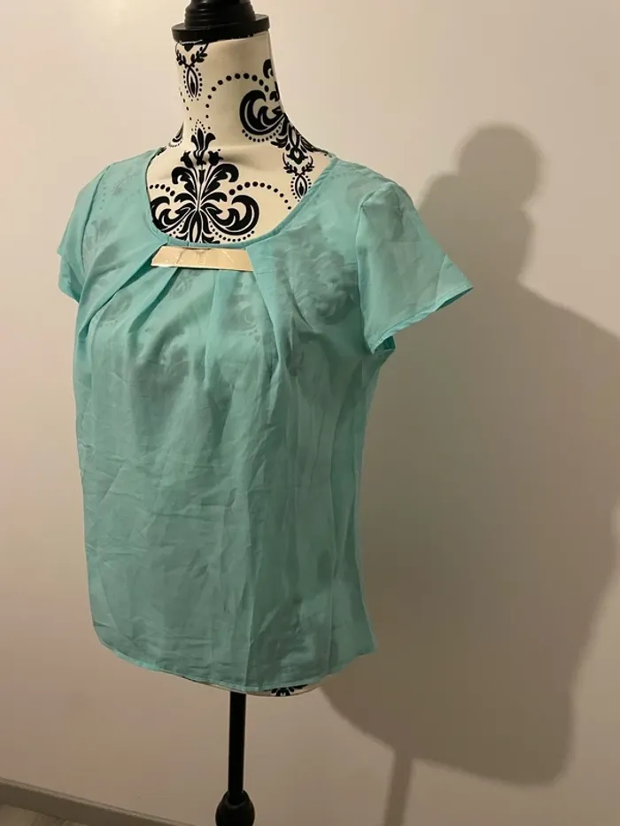 Blouse à manches courtes col rond bijoux collier bleu turquoise et doré 3 suisses taille 38 - photo numéro 1