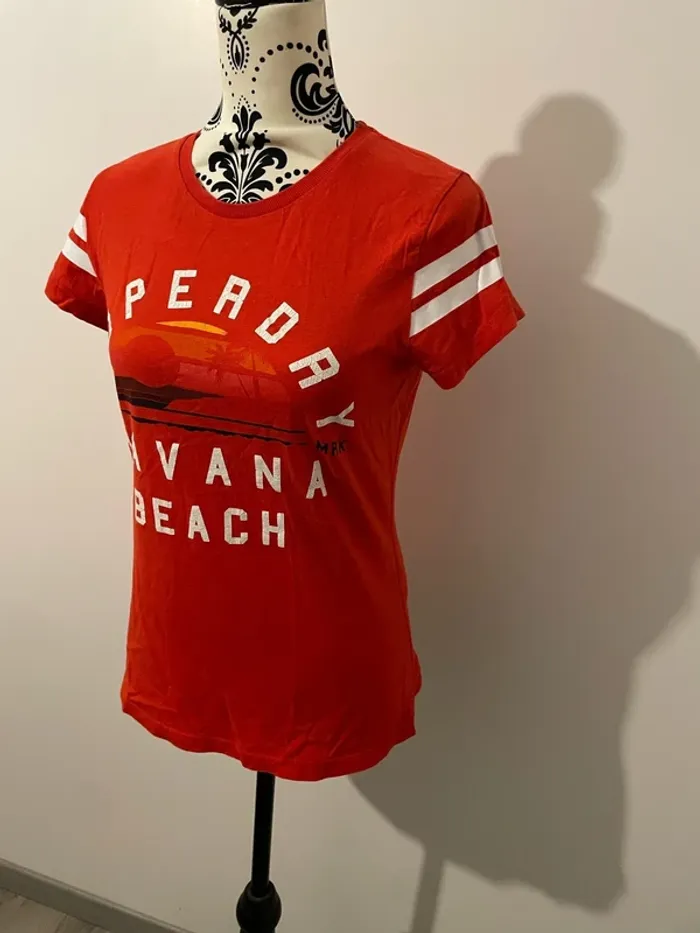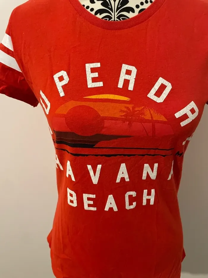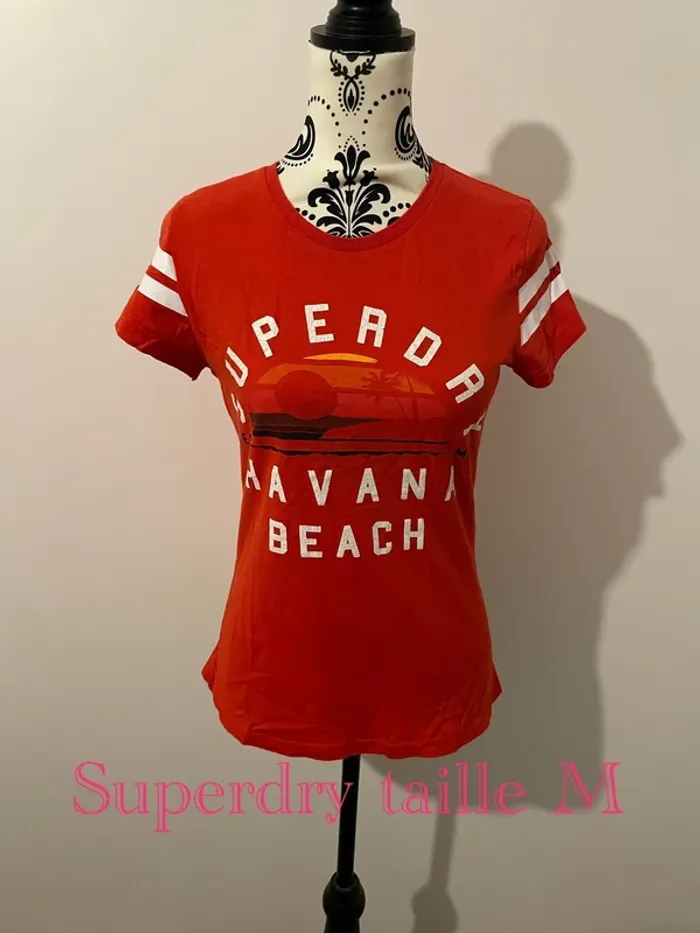 Bonjour je vends mon T-shirt à manches courtes rouge motif blanc Havana beach col rond Superdry taille M Il est en excellent état très peu porté #tiatia_femme_taille38
