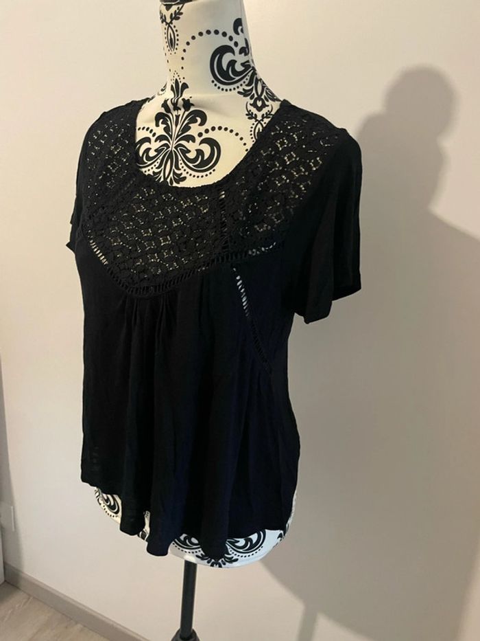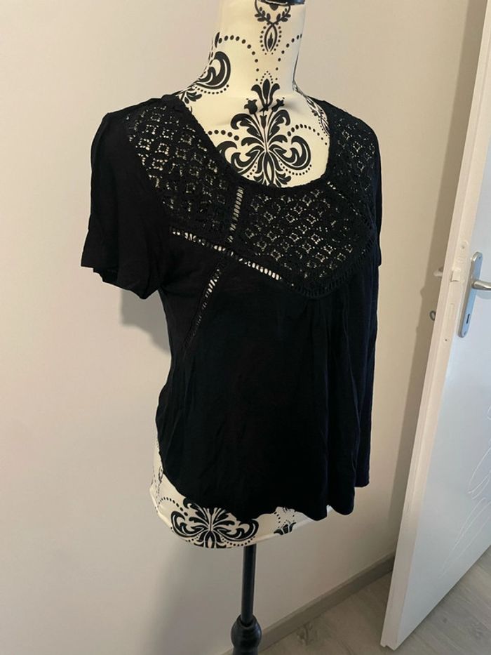 T-shirt blouse ample noir à col rond dentelle manches courte Jennyfer taille 36