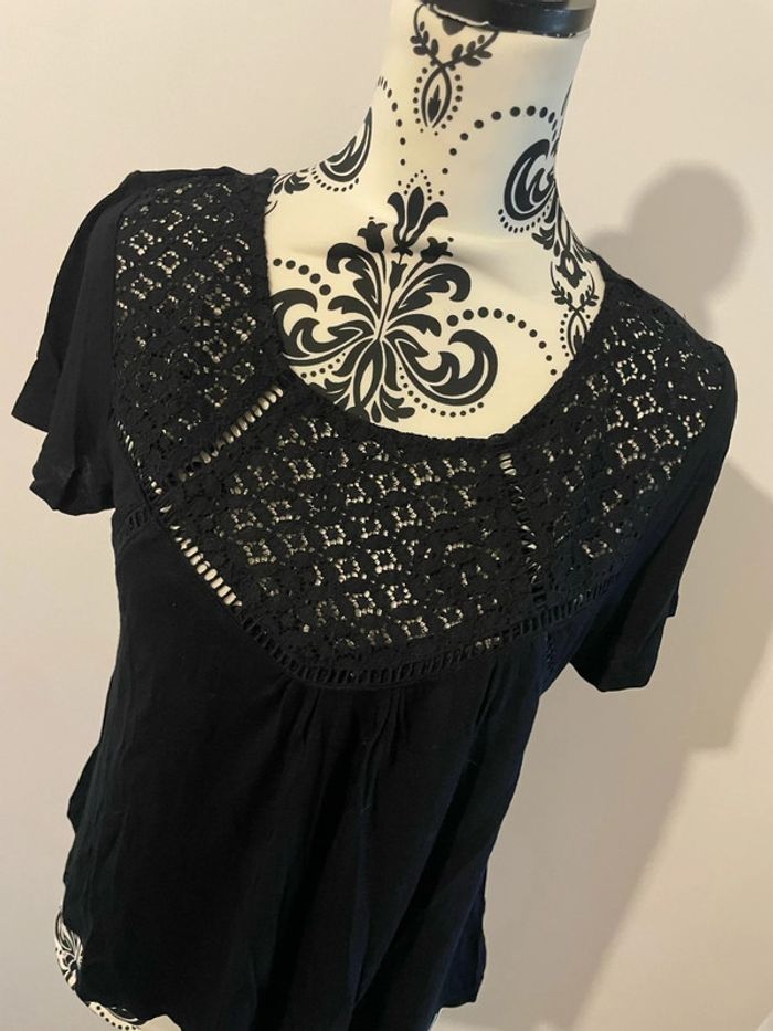 Bonjour je vends mon T-shirt blouse ample noir à col rond dentelle manches courte Jennyfer taille 36 Il est en excellent état très peu porté #tiatia_femme_taille36