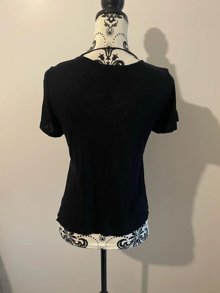 T-shirt blouse ample noir à col rond dentelle manches courte Jennyfer taille 36 - photo numéro 2