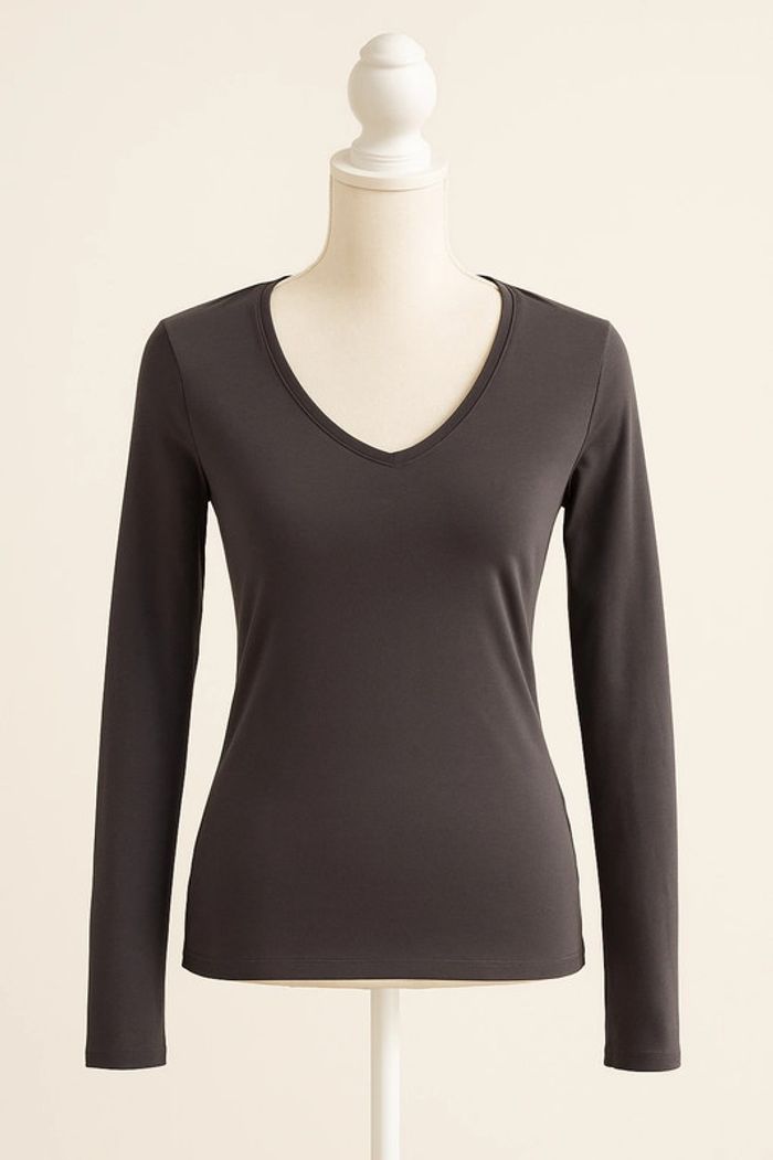 Haut basique et confortable de la marque In Extenso, couleur gris anthracite. 👚 Col en V flatteur, manches longues, coupe droite. 🧵 Tissu doux et légèrement stretch, agréable à porter au quotidien. 🔖 Taille M, convient à un 38/40. 📸 En très bon état, peu porté. 💡 Parfait sous une veste ou porté seul avec un jean ou une jupe.