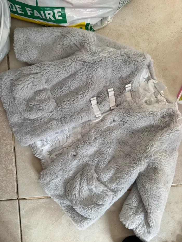 Veste fille 12 mois – Fausse fourrure grise - photo numéro 1