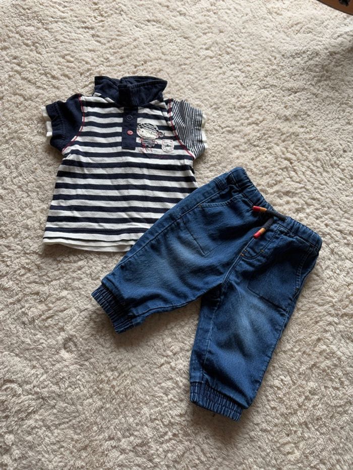 ensemble six mois t-shirt jean orchestra très bon état