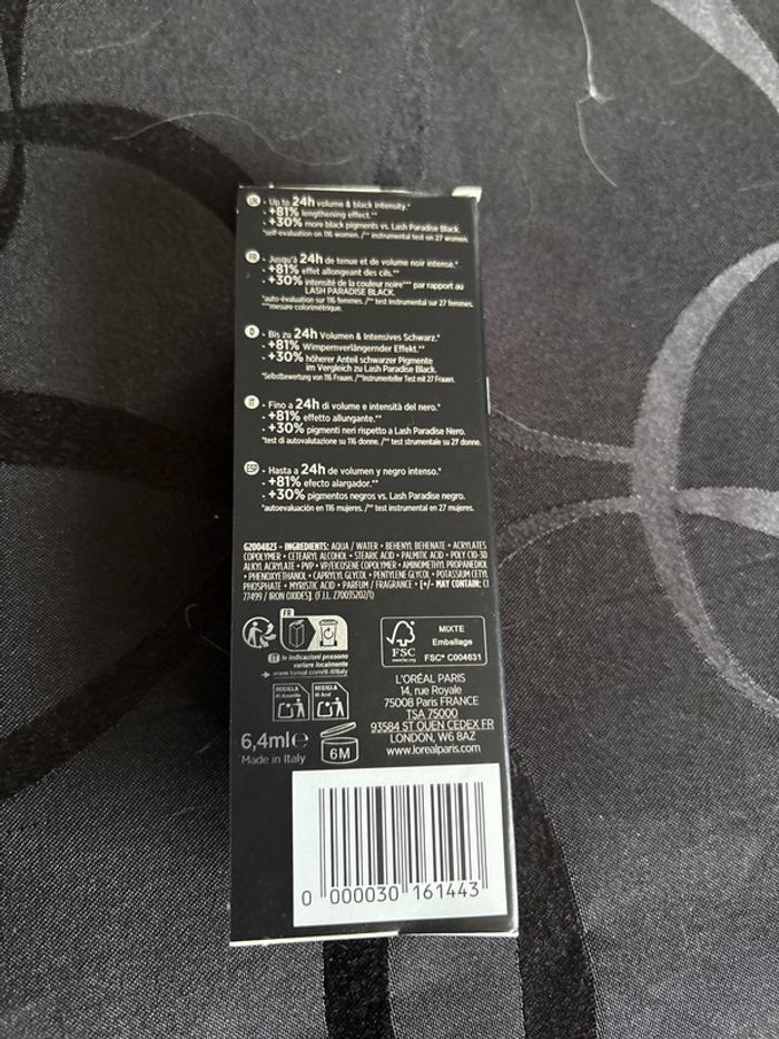lash paradise forever noir mascara neuf l'oreal paris convient aux yeux sensibles facile à appliquer brosse ultra douce donne volume et longueur aux cils