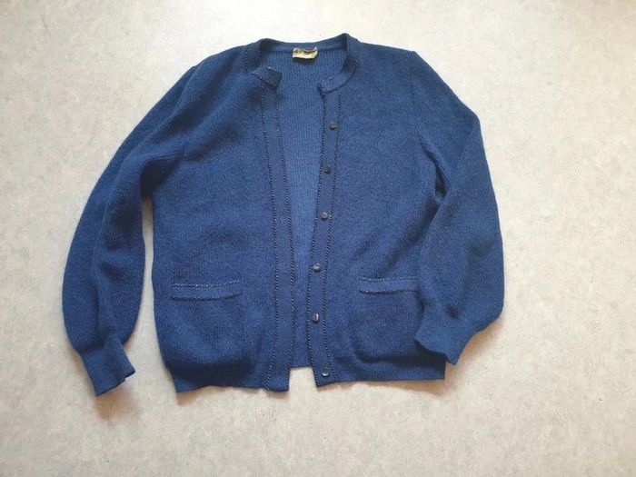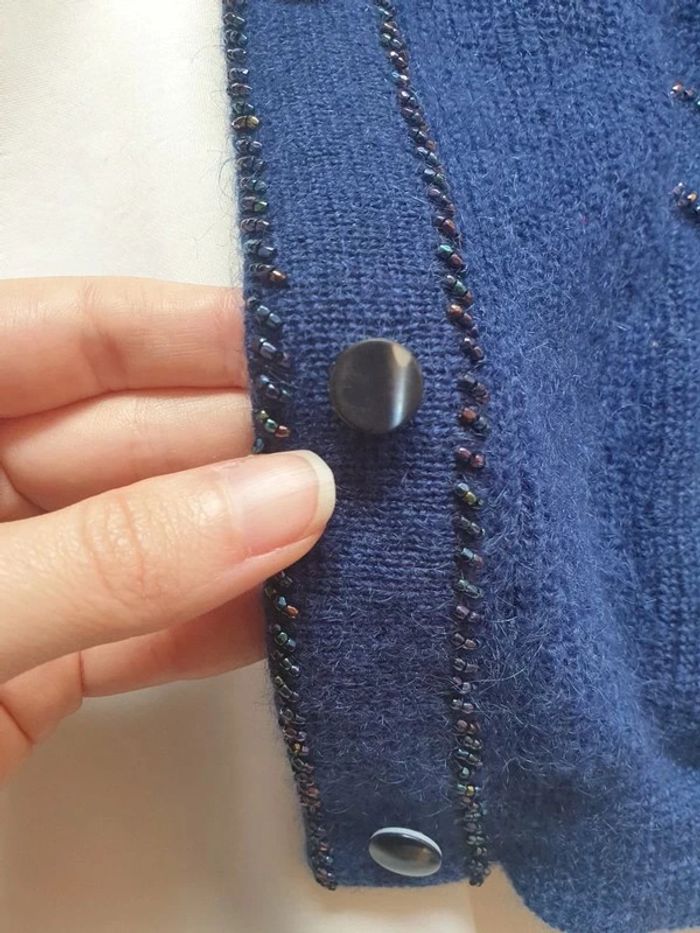 Veste très chaude 80%mohair couleur bleu roi Originale avec ses détails perles Taille 44