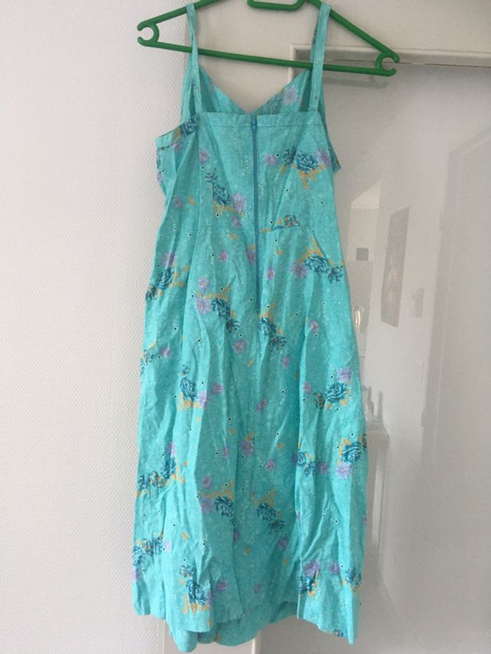 robe turquoise fleurie taille 38 ceinture pour marquer la taille légère portée une fois donc en très bon état bretelles fines