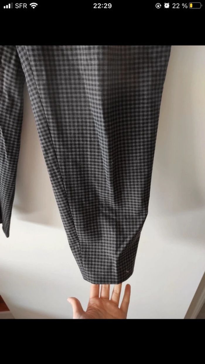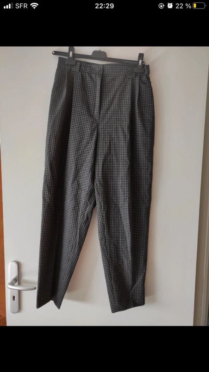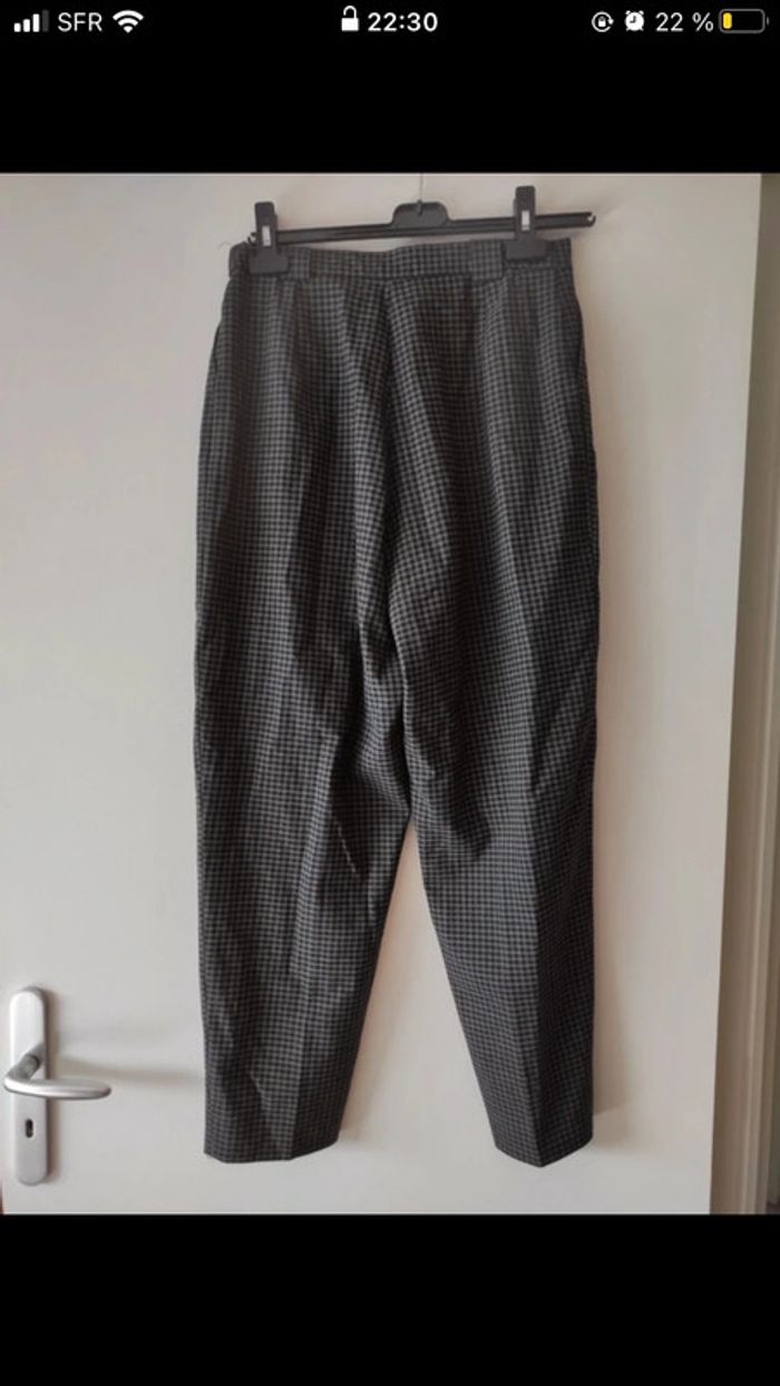 pantalon taille haute à carreaux gris et noir taille sept huitième chic original