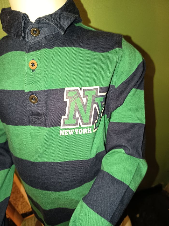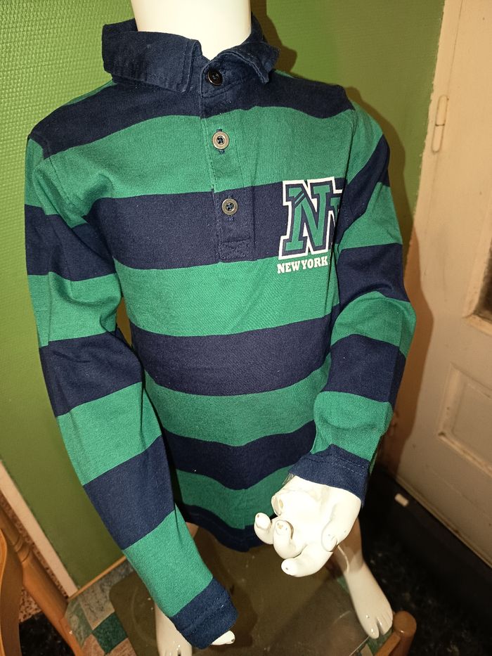 Polo manches longues Rayures horizontales Bleu et vert Col chemise Taille 6 ans 100% coton #coton #rayures #vert #bleu #polomancheslongues #polo #colchemise #rayures #inextenso #6ans #marylene025garçon6ans