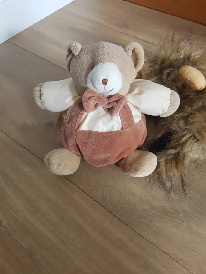 Peluche ours avec capuche de lion je pense d'inspiration Bukowski car sans étiquette! Hochet dans la tête! Environ 18 cm #aline_38_peluche