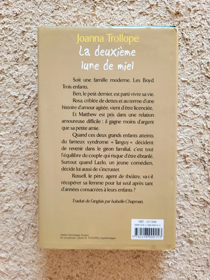 ⭐️ Nombreux livres dans mon dressing réductions sur les lots activées ✨️ 📚 Livre "La deuxième lune de miel", un roman de Joanna Trollope 📕 Couverture rigide avec jaquette et pages en très bon état 📖 Lorsque leur plus jeune fils part pour l’université, Russell et Edie Boyd imaginent pouvoir enfin se retrouver seuls. Mais très vite, leurs trois enfants reviennent vivre chez eux : suspicions, dettes, ruptures amoureuses, et une actrice mère qui retrouve un rôle clé sur scène… Leur « deuxième lune de miel » tourne vite au brouhaha familial et les oblige à réinventer leur couple et leurs choix de vie.
