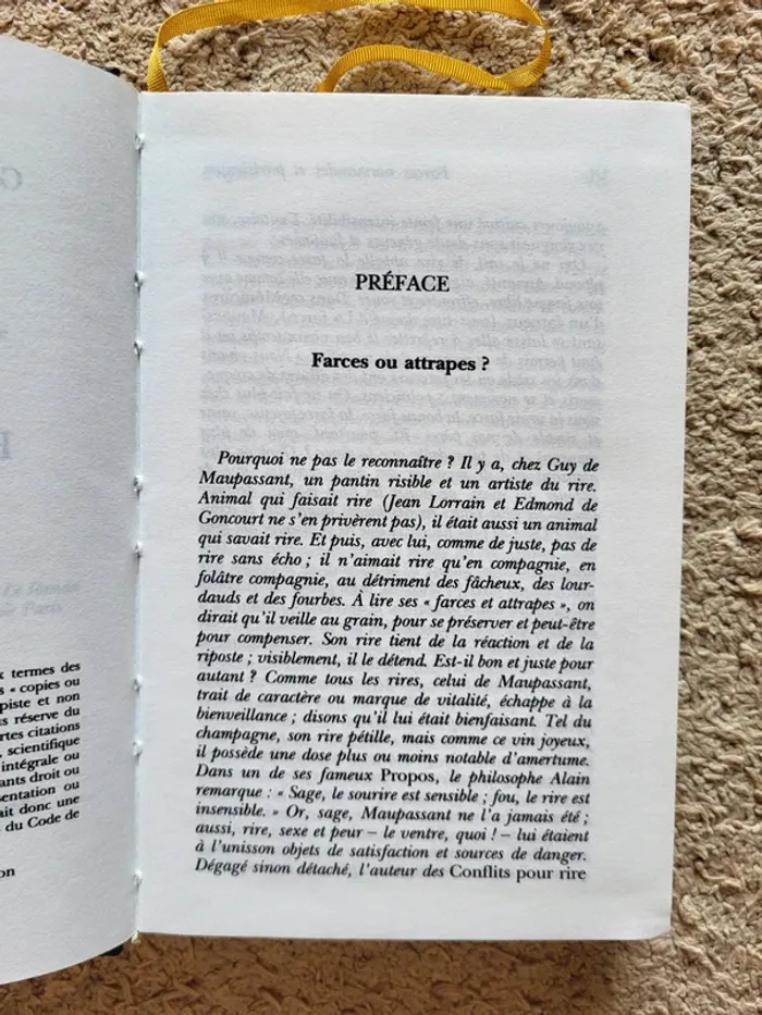 ⭐️ Nombreux livres dans mon dressing réductions sur les lots activées ✨️ 📚 Livre "Farces normandes et parisiennes", un recueil de contes humoristiques et satiriques de Guy de Maupassant 📕 Couverture rigide avec jaquette et pages en parfait état 📖 Ce recueil rassemble une trentaine de petites farces et nouvelles drôles, réparties entre la Normandie rurale et le Paris mondain. Maupassant y croque des situations cocasses, des quiproquos et des ruses malicieuses, souvent inspirées des personnages populaires normands ou des petits bourgeois parisiens. Un exemple marquant est « Farce normande », qui raconte un mariage en Normandie où un groupe de invités joue un tour humiliant au marié braconnier : ils l’éjectent de son lit de noces, le ligotent et accrochent trois lièvres morts autour de lui, avec une pancarte moqueuse (“Qui va à la chasse, perd sa place”) 📍