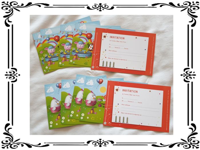 Cartons d’invitations 4 ans. Lot de 10 cartons (2 modèles légèrement différents). 15,1x10,5 cm. Imprimé 4 ans au dos de chacune. Vendues sans enveloppes. En très bon état. Sans marque. 2€ les 10. #vero38110scolarite