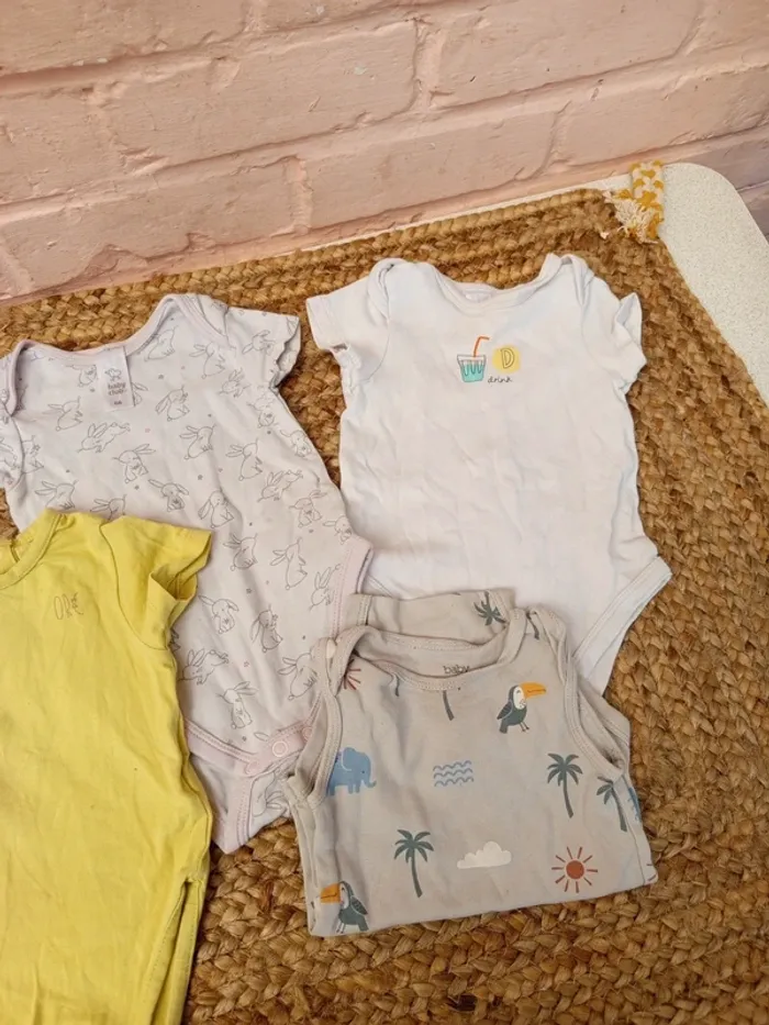 Un bodies courte manche rose tex baby Un bodies courte manche jaune orchestra Deux bodies courte manche et un sans manche c et a #caraemel1fille6mois