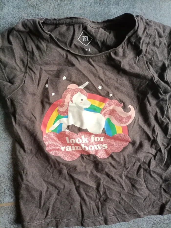 #vetbebe2ansmandy #vetbebe24moismandy #vetbebe3ansmandy #vetbebe36moismandy T-shirt licorne indiqué taille 2-3ans couleur gris/marron