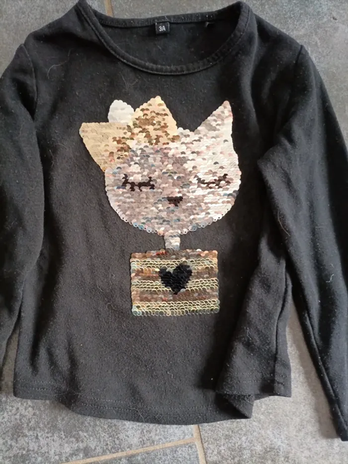 #vetbebe3ansmandy #vetbebe36moismandy T-shirt manches longues avec sequins indiqué taille 3 ans Bouloches