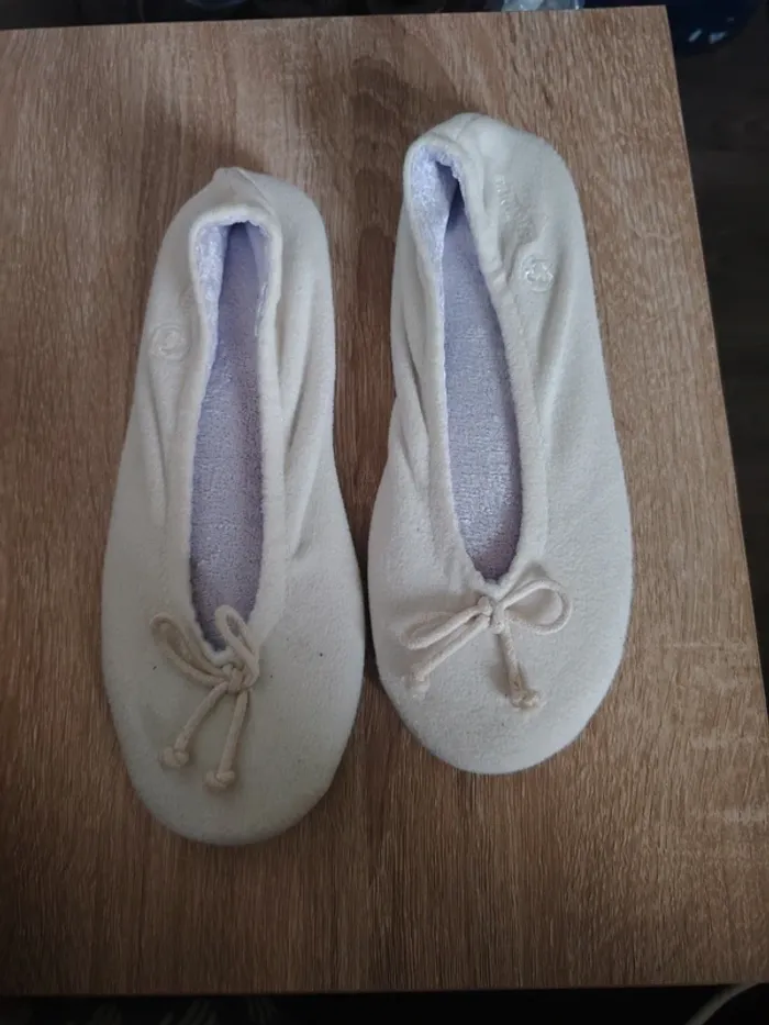 #meganeayronchaussure Chausson creme intérieur violet marque isotoner taille 37/38