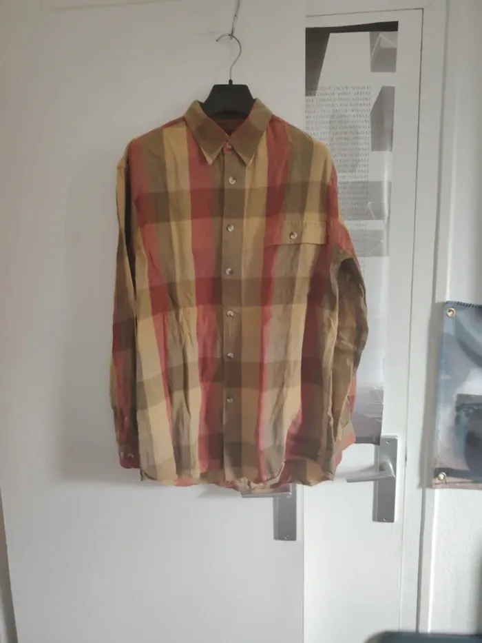#meganeayronhommem Chemise manche longue marron et rouge à carreaux marque atlas for men taille M