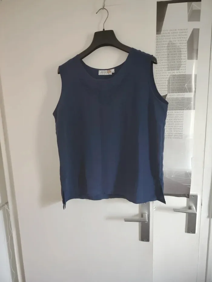 #meganeayronquarantesix Débardeur marine marque 20/20 taille 46 Aisselle à aisselle 56cm Longueur 66cm