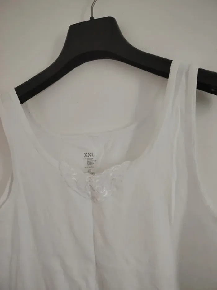 #meganeayronquarantequatre Débardeur blanc marque zeeman taille XXL Aiseille a aisselle 47cm Longueur 66cm