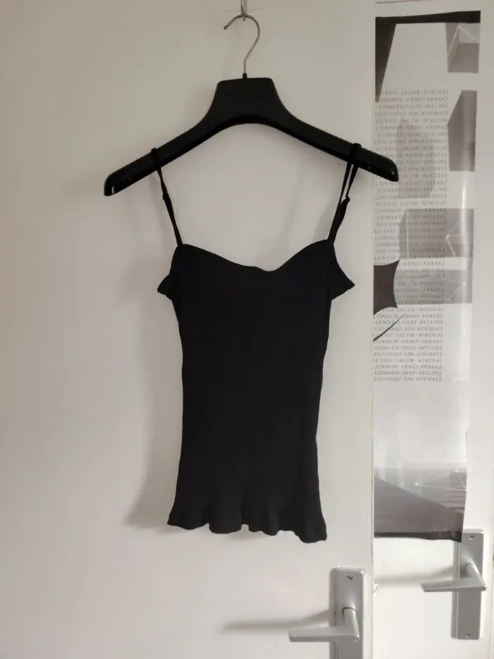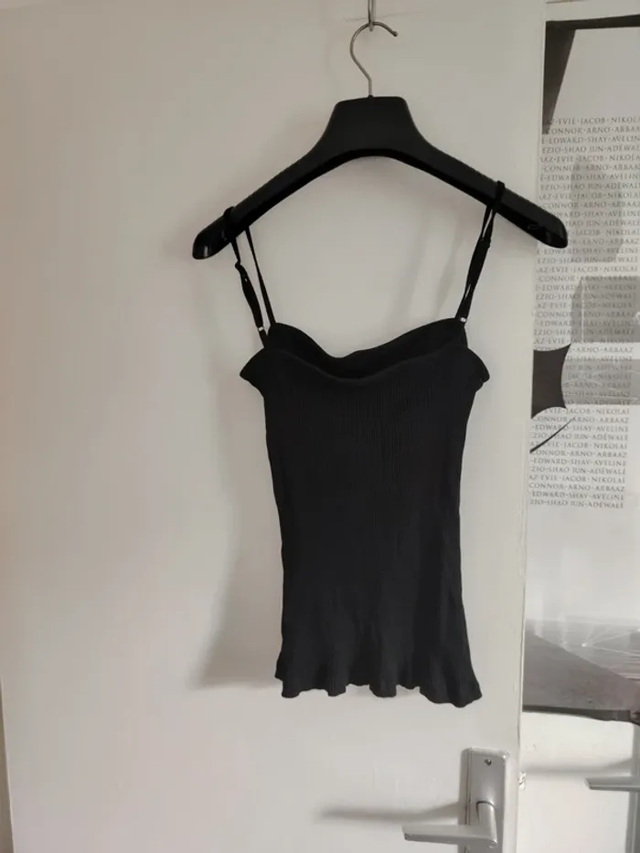 #meganeayrontrentequatre Debardeur noir sans marque taille 34 Étiquette de taille coupe Aisselle à aisselle 36cm