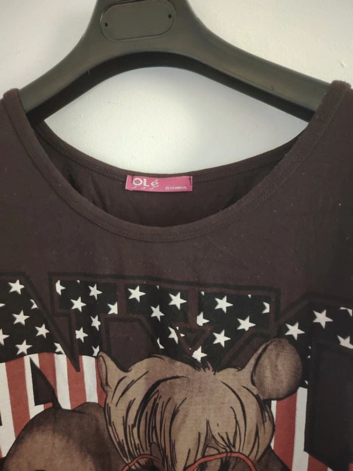 #meganeayrontrentesix Tee-shirt marron marque olé Istanbul taille 34 Étiquette de taille coupe Aisselle à aisselle 40cm