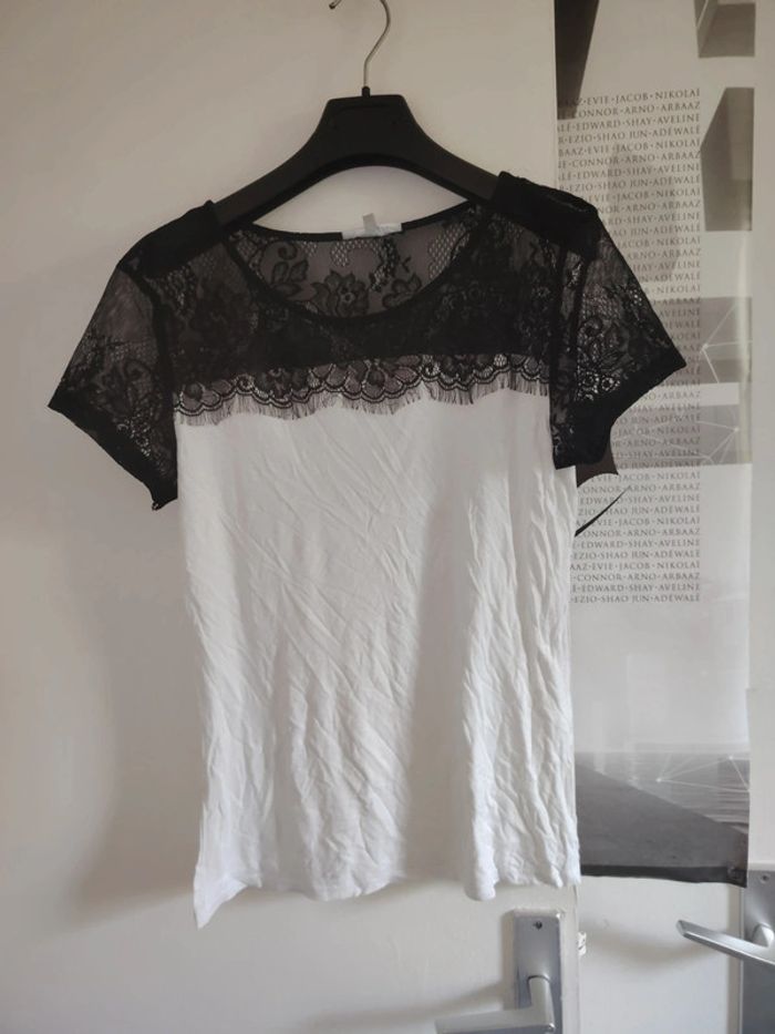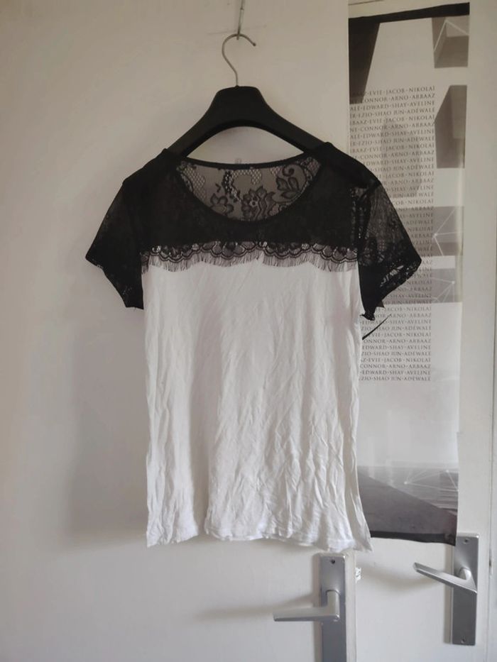 #meganeayronquarante Tee-shirt noir et blanc marque etam taille L