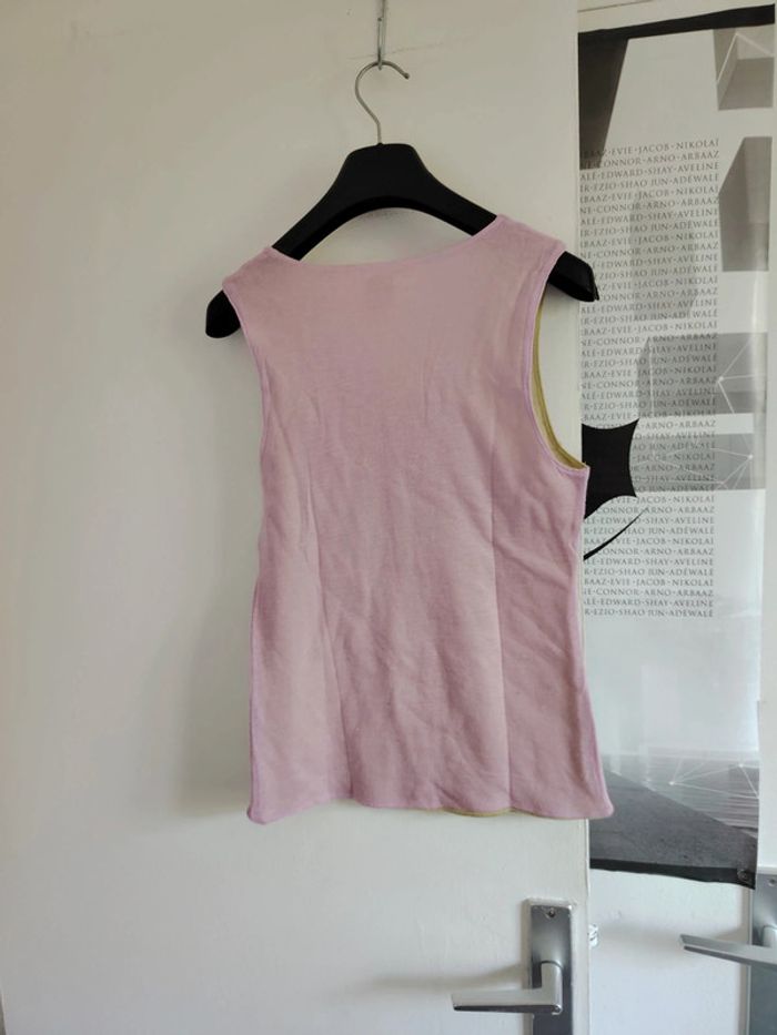 #meganeayronquarante Débardeur rose intérieur vert marque camaïeu taille 3