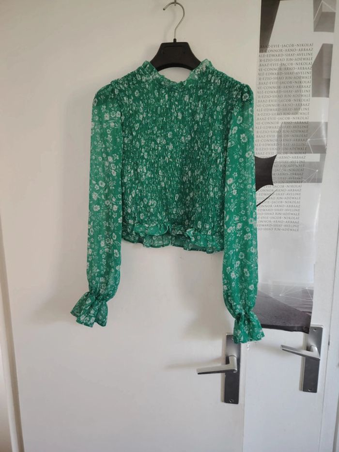 #meganeayrontrentesix Crop top vert à fleur blanc marque tally weijl taille S