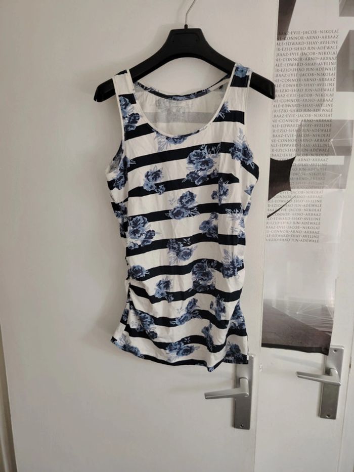 #meganeayrontrentehuit Débardeur blanc rayer bleu marque esmara taille 38/40 Aisselle à aisselle 44cm