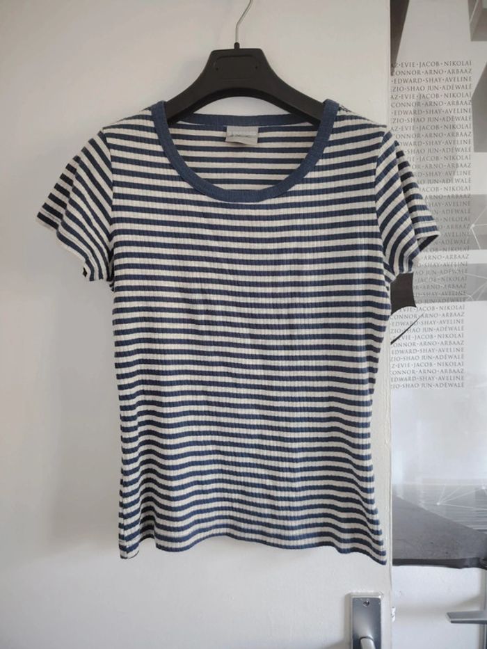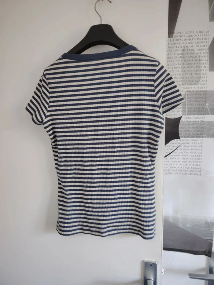 #meganeayrontrentehuit Tee-shirt bleu rayer blanc marque 3 suisses taille 38/40