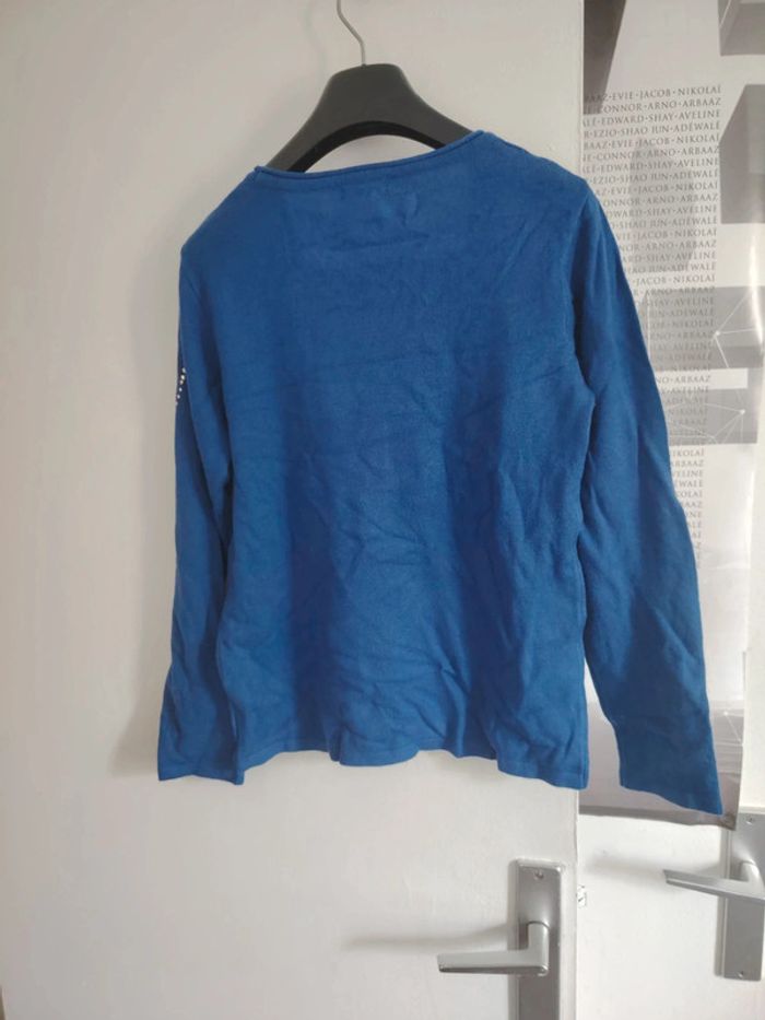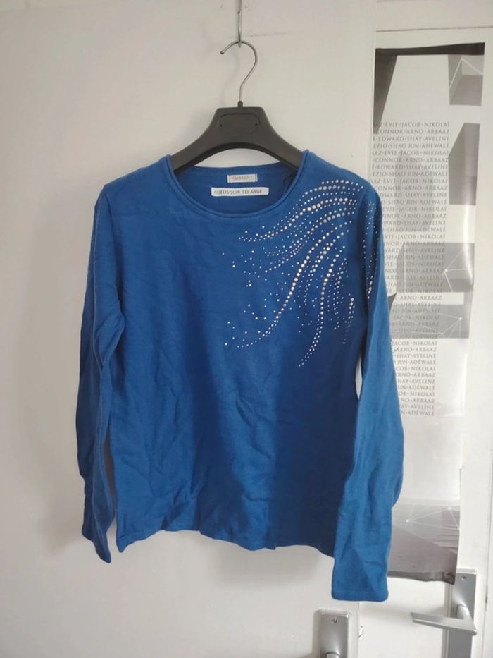 #meganeayrontrentequatre Blouse manche longue bleu et argenté marque damart taille 34/36
