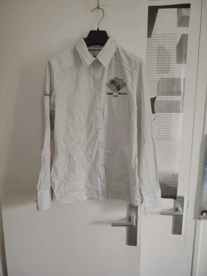 #meganeayronquarantedeux Chemise blanc rayer gris marque Tom tailor taille 42