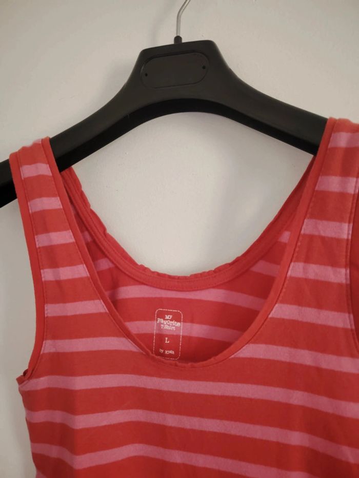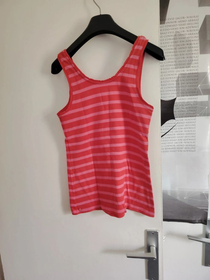 #meganeayronquarante Débardeur rouge rayer rose marque my favorite Tee-shirt by kiabi taille L