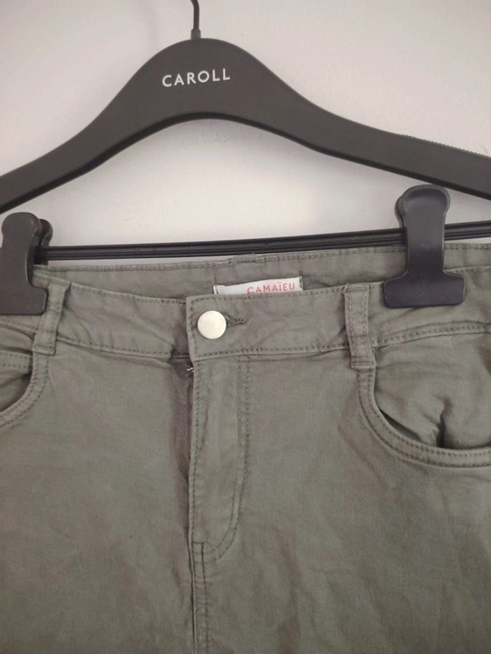 #meganeayrontrentesix Jean kaki marque camaïeu taille 36 Étiquette de taille coupe Taille 37cm