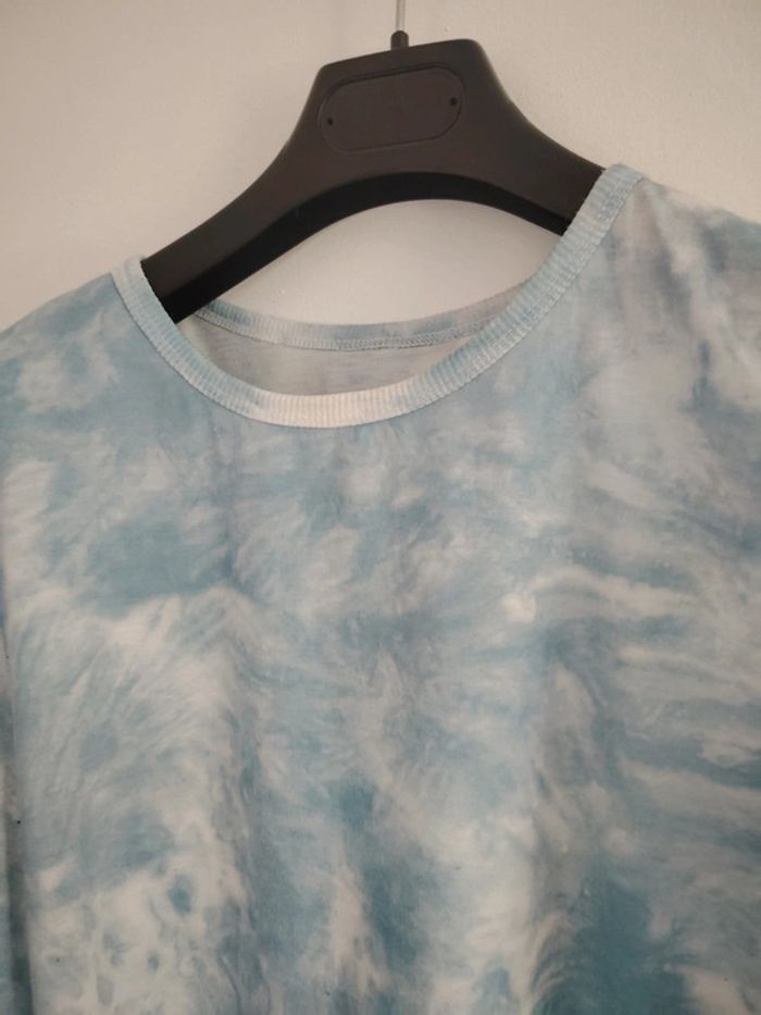 #meganeayrontrentesix Crop top bleu et blanc sans marque taille 36 Étiquette de taille coupe Aisselle à aisselle 51cm coupe oversize Épaule a épaule 42cm
