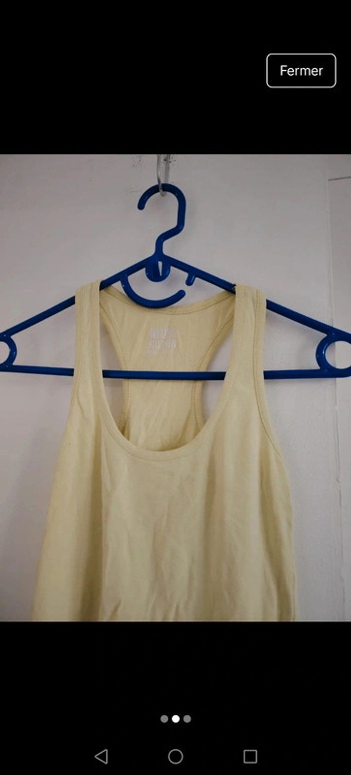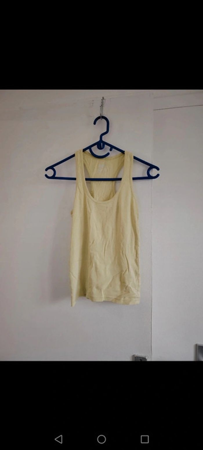 #meganeayrontrentequatre Debardeur jaune marque mim taille 34 Étiquette de taille coupe