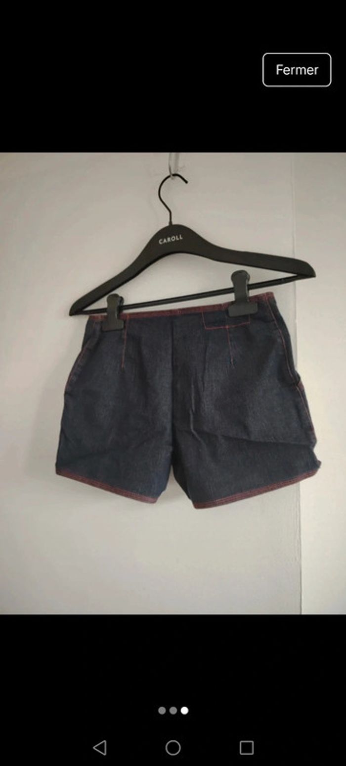 #meganeayrontrentequatre Short taille haute belu et rouge marque promod taille 34 Étiquette de taille efficace