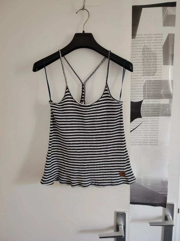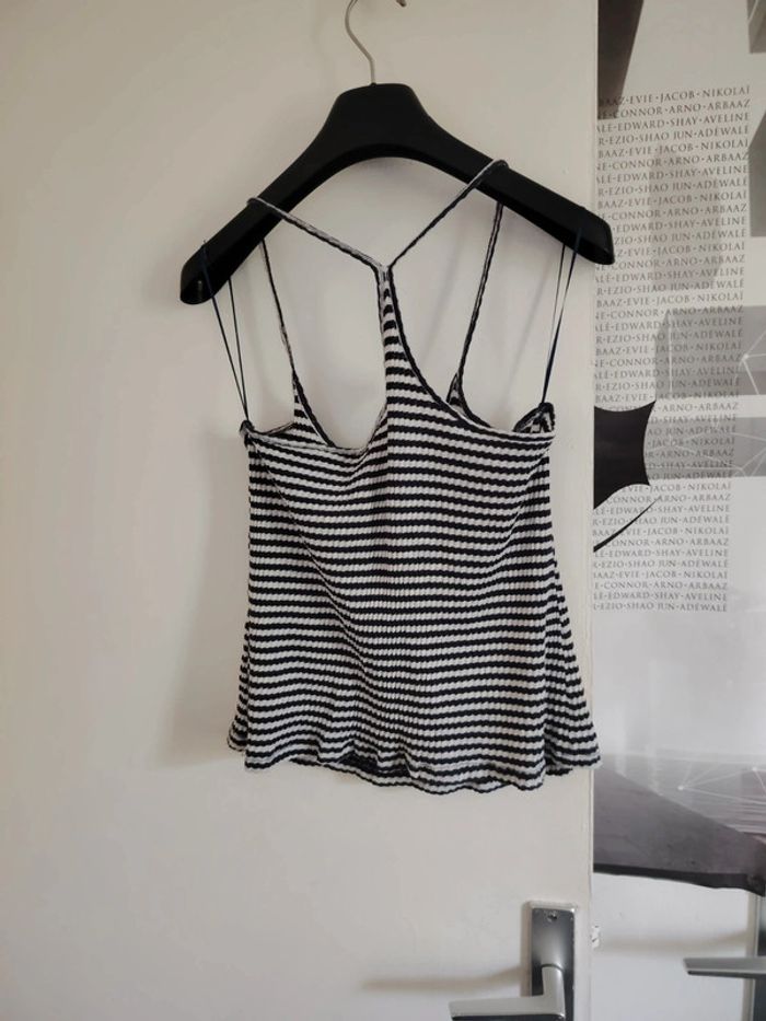 #meganeayrontrentehuit Crop top bleu rayer blanc marque Springfield taille M