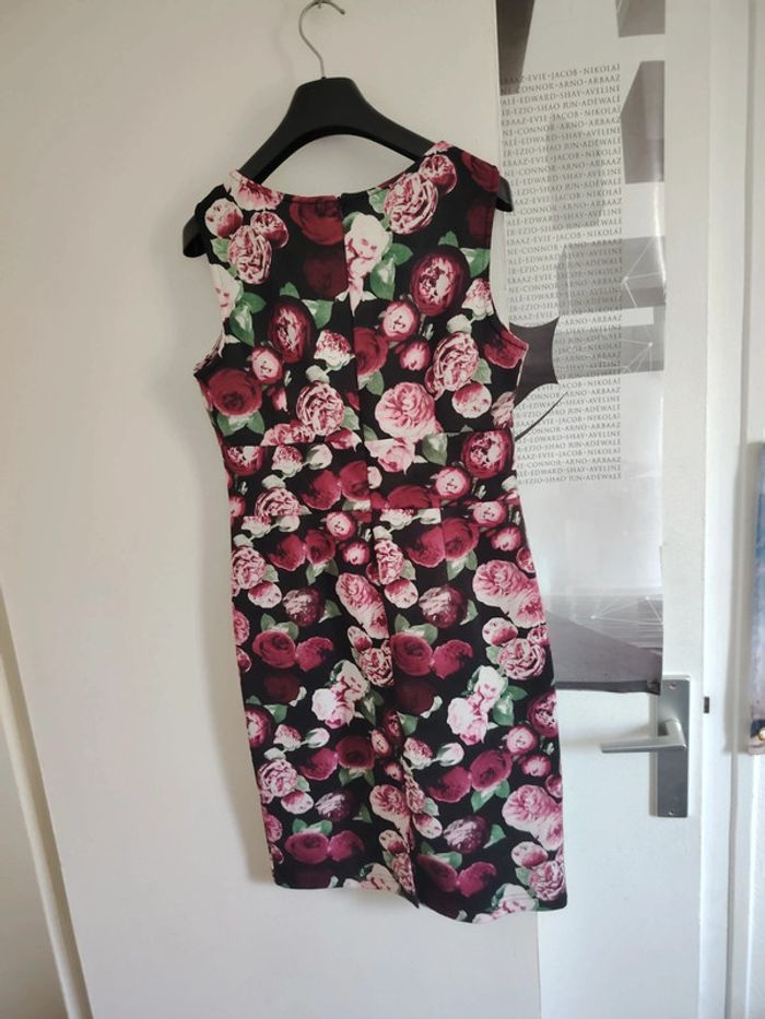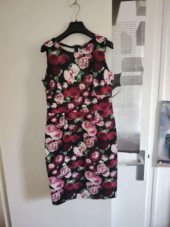 #meganeayrontrentehuit Robe noir à fleur rose violet marque body flirt taille 38