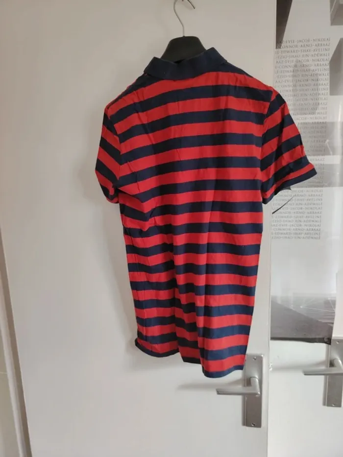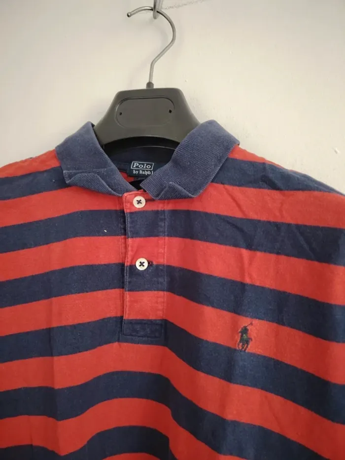 #meganeayronhommes Polo rouge rayer marine marque Ralph Lauren taille S