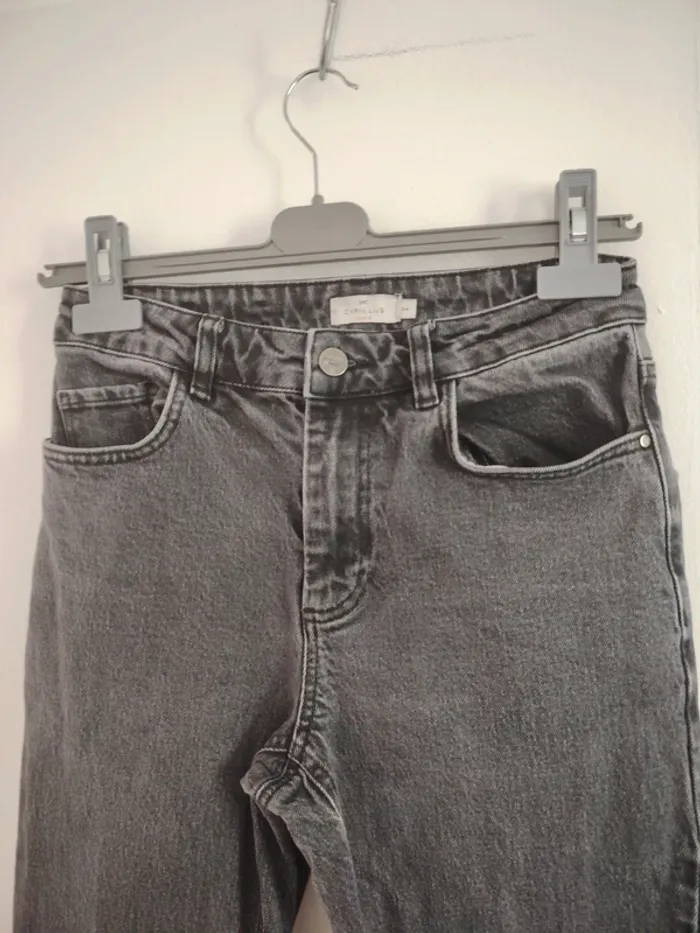 #meganeayrontrentequatre Jean taille haute gris marque cyrillus taille 34