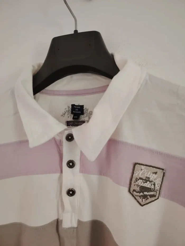 #meganeayronhommexxl Polo blanc Lila et taupe marque terre de marins taille XXL