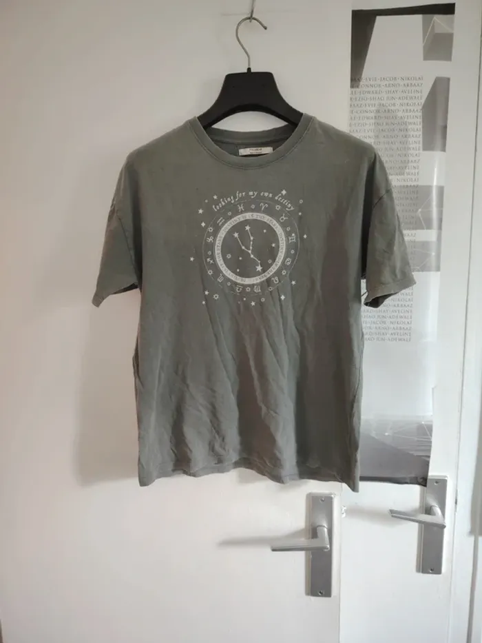 #meganeayrontrentesix Tee-shirt gris motif astral marque pull & bear taille S