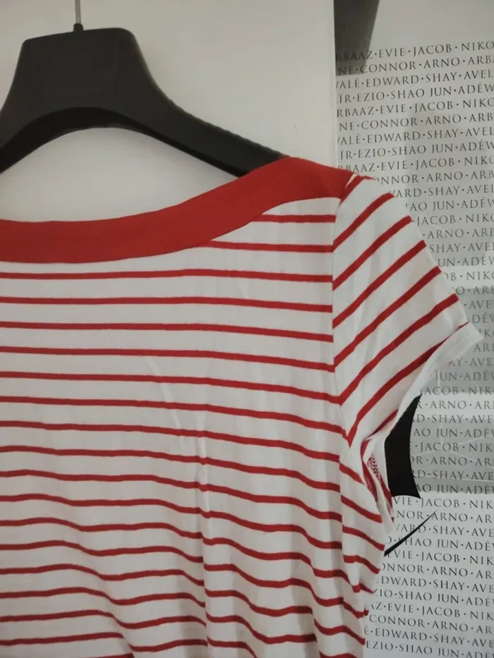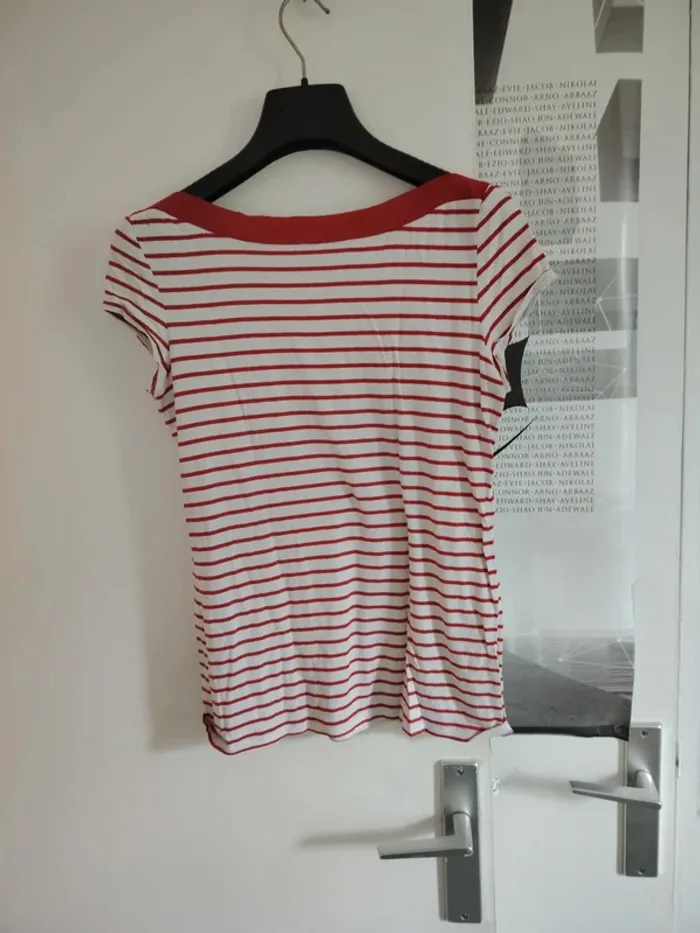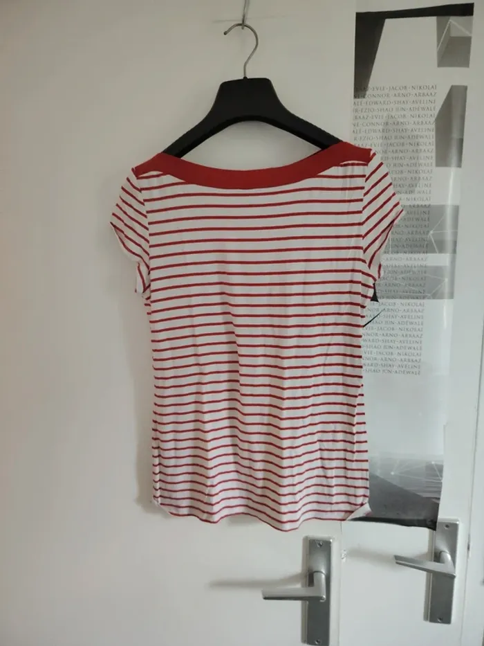 #meganeayrontrentehuit Tee-shirt rouge rayer blanc marque camaïeu taille 38 Étiquette de taille coupe Aisselle à aisselle 48cm