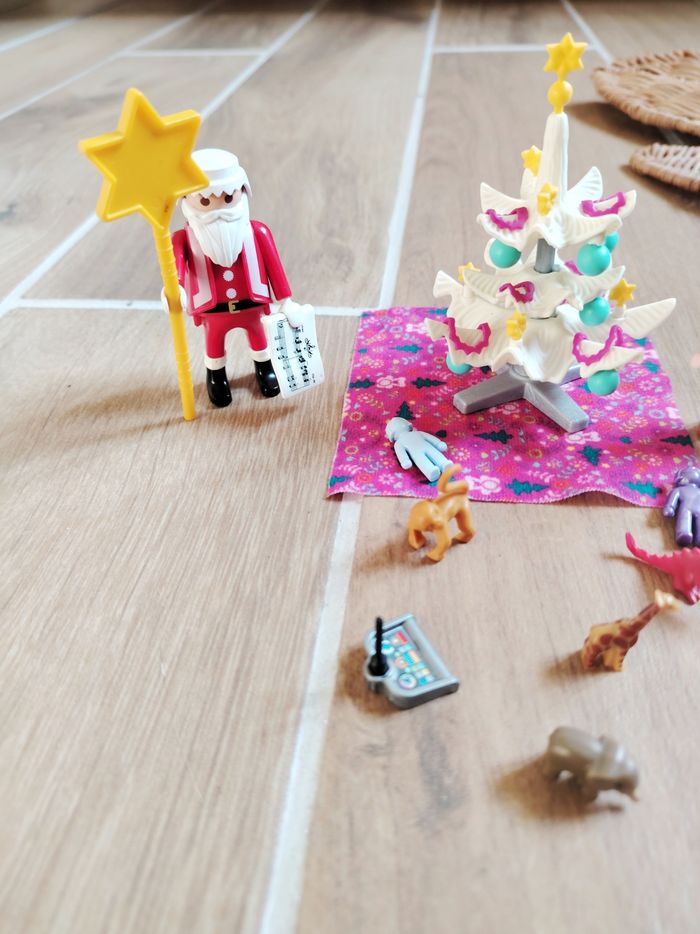 🎅Playmobil lot figurines personnages Père Noël et petite fille (MMS) 🎀Avec boîte à musique sonore, sapin de Noël et jouets