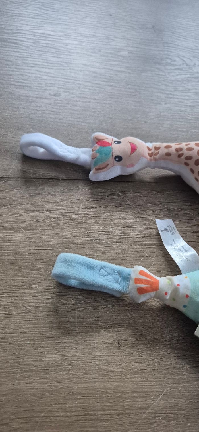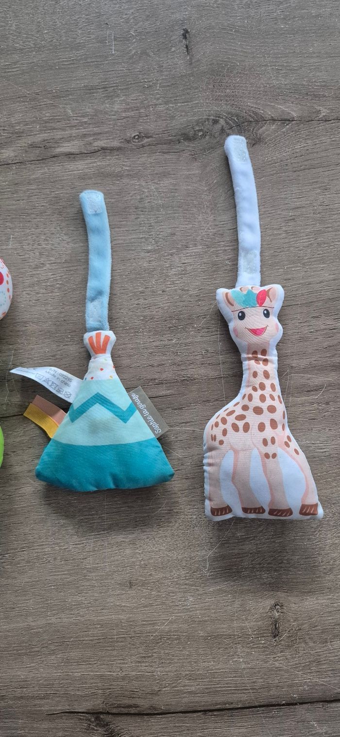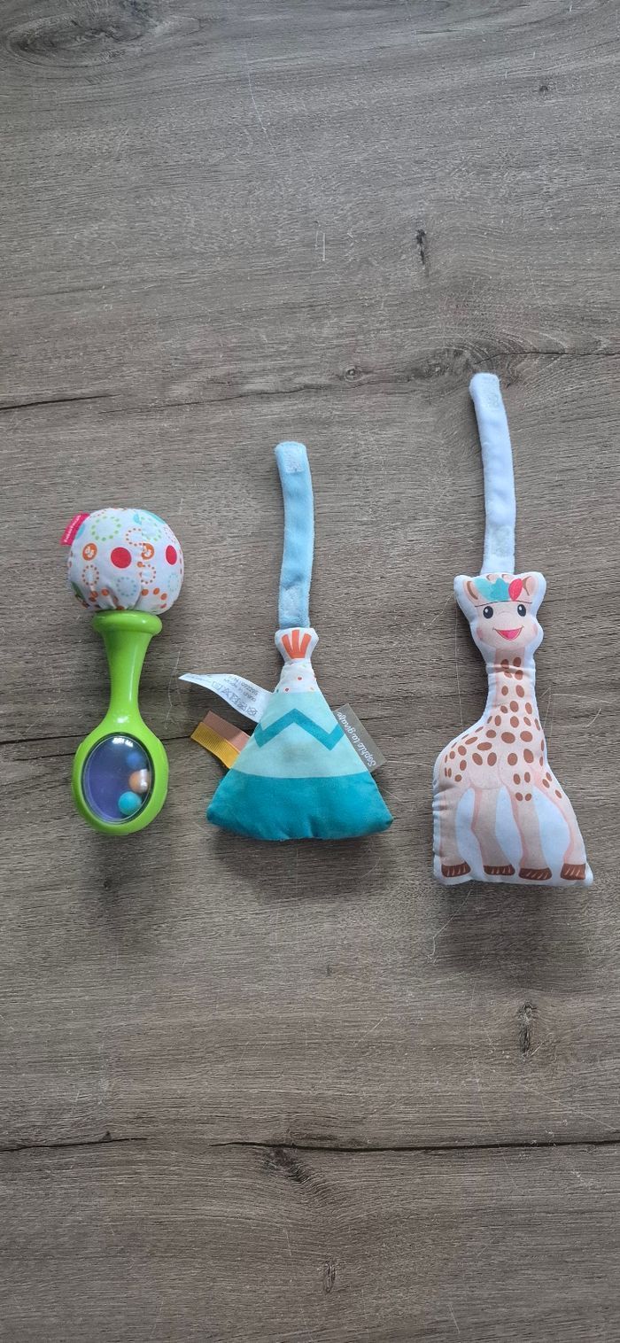 Hochet Fisher Price et 2 hochets à suspendre par scratchs Sophie la girafe Bon état