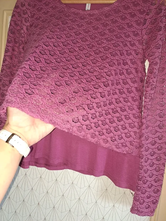 Haut femme doublé dentelle fushia tbe Fb sister XS - photo numéro 6