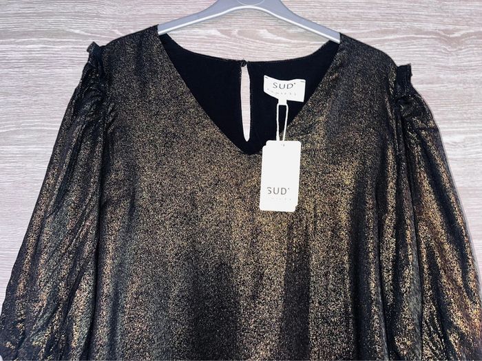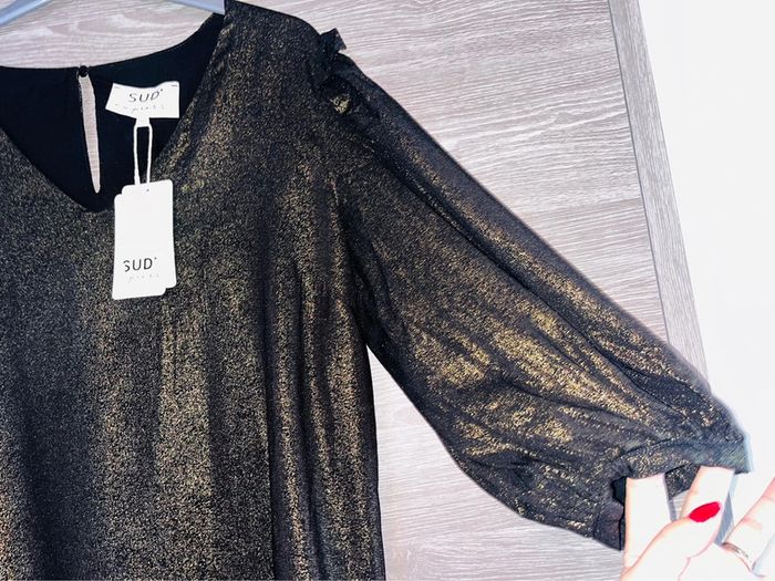 Belle robe manche 3/4 sud expresse neuve avec étiquette taille M Noir et dorée