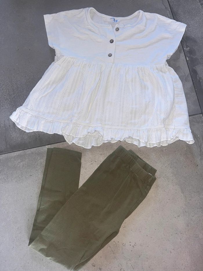Ensemble mayoral 7 ans top crème + legging kaki bon état
